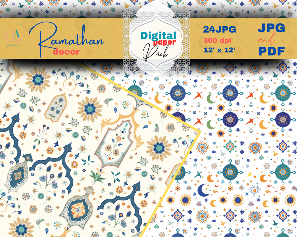 Exquisite Digital Papers & Décor,islamic Seamless Patterns,Arabian printable digital backgrounds,set of 24 jpg and pdf files,300dpi