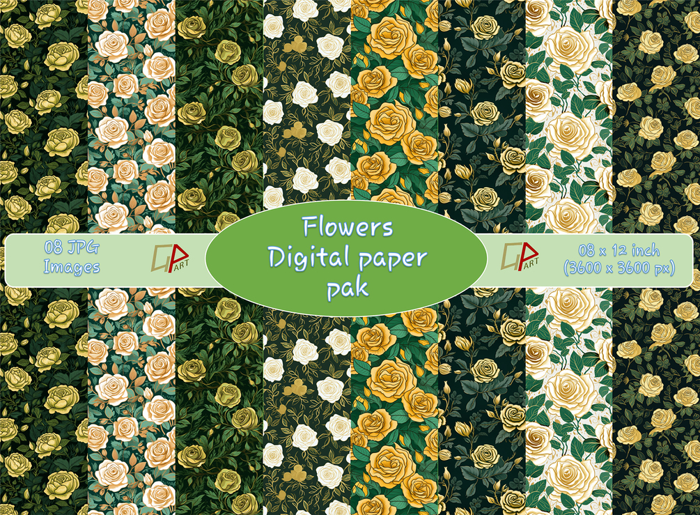 Floral Patterns, Green and Gold Rose Papers,Digital Papers,Floral Background,Seamless Repeat Pattern,Floral Background,Repeating Pattern,Floral Geometric,Digital Paper Digital Seamless Art,pack of 08 mpg images